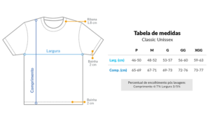 Técnica de impressão: Silk Digital HD. Composição: 100% algodão, meia malha cardada, costura simples, gola em ribana, 145g, fio 24.1. Cores do produto: Como cada tela de computador ou celular tem seu próprio jeito de mostrar cores, então a cor da sua camiseta e da estampa pode ser um pouco diferente do que você viu online.